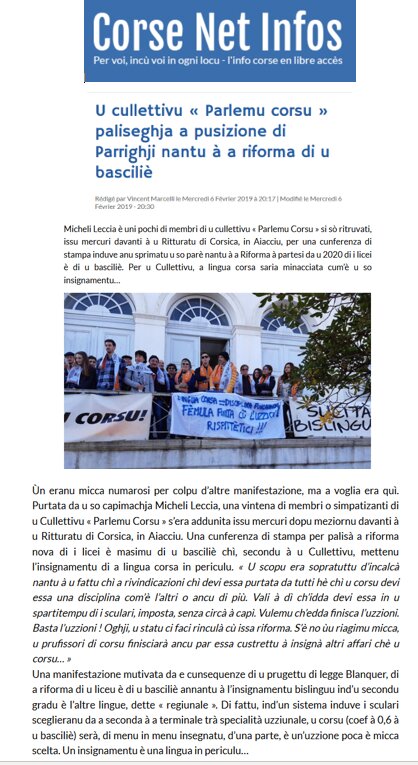 Conférence Du Collectif « PARLEMU CORSU ! » 06/02/19 devant le rectorat d’Ajaccio