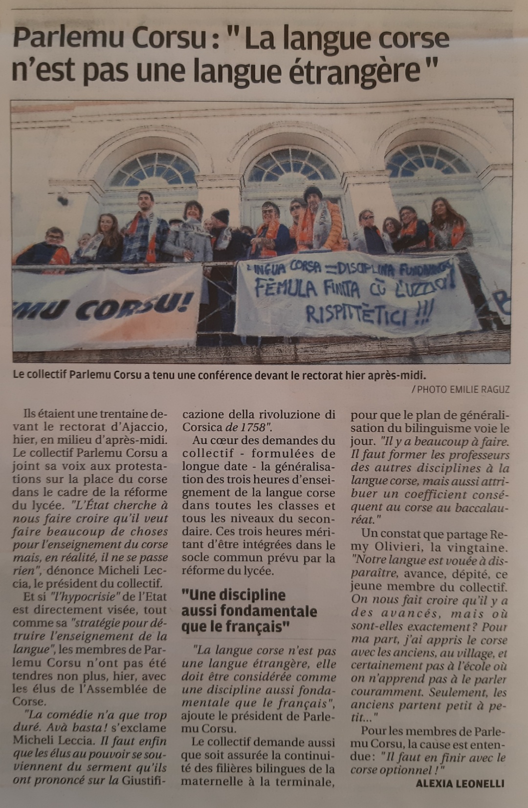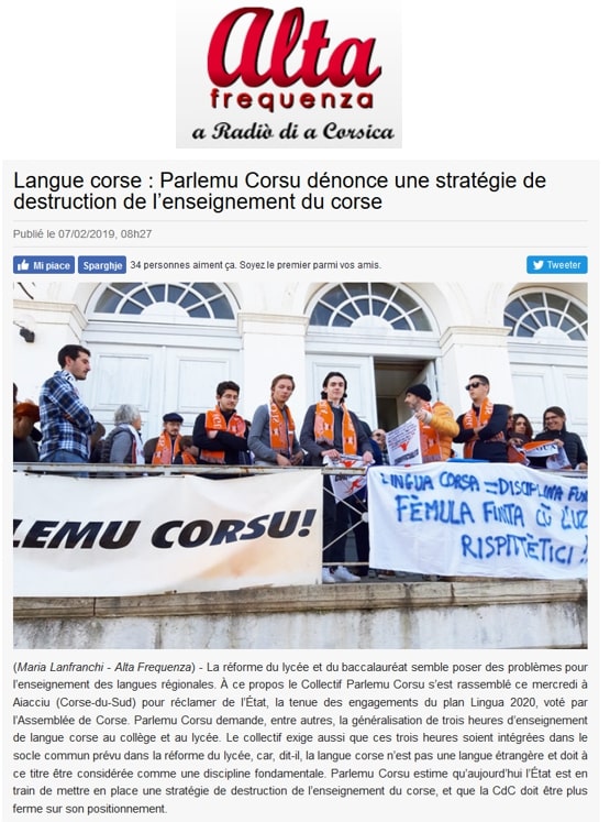 Conférence Du Collectif « PARLEMU CORSU ! » 06/02/19 devant le rectorat d’Ajaccio