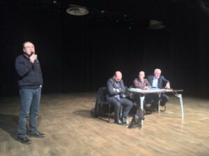 Par purtà a boci di “Parlemu Corsu!” ci era Micheli Leccia : “Aspittemu unu impegnu più dinàmicu di a Cullittività” ; “Ùn màncani l’iniziativi privati, ci voli à sustènali è à rèndali più visìbuli” ; “frà altru, a traduzzioni (di filma è òpari littararii) devi essa rinfurzata” ; “u nosciu travaddu cù i fieri aspetta d’essa spartutu…” ; “Più chè mai ci voli à fà… è, à tempu, più chè mai ci voli à rivindicà… À PRESTU !!!”