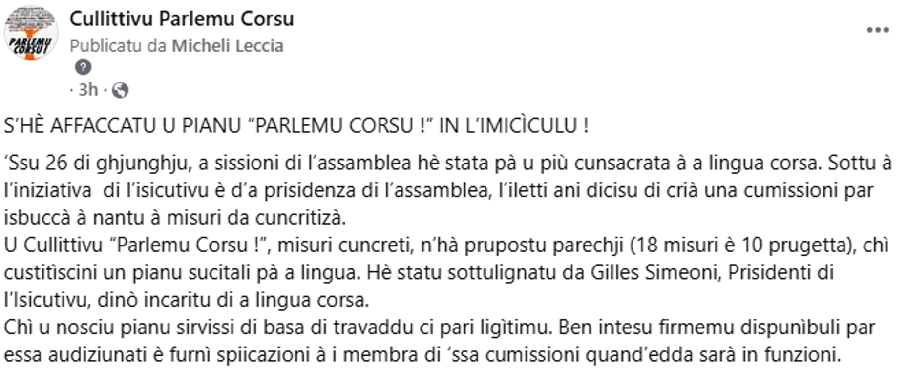 26/06/25 : S'hè affaccatu u pianu "Parlemu Corsu !" in l'imicìculu !