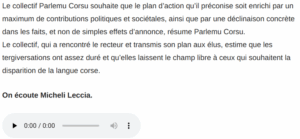 26/06/25 : S'hè affaccatu u pianu "Parlemu Corsu !" in l'imicìculu !11/07/25 : Sicondu scontru cù u rittori, in visiucunfarenza.