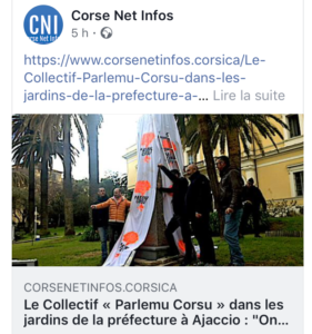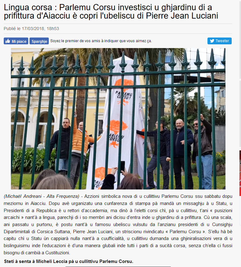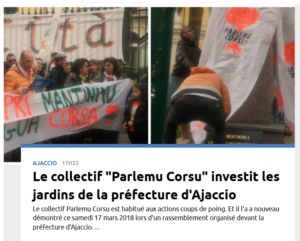 corsematin web 20/09/17: azzioni "Basta a cumedia" à nantu à u tettu di u Ritturatu.04/08/18: "Parlemu Corsu !" à a fiera di Filitosa cù ghjoca pà i ziteddi, attella dimustrativi di l'artigiani...