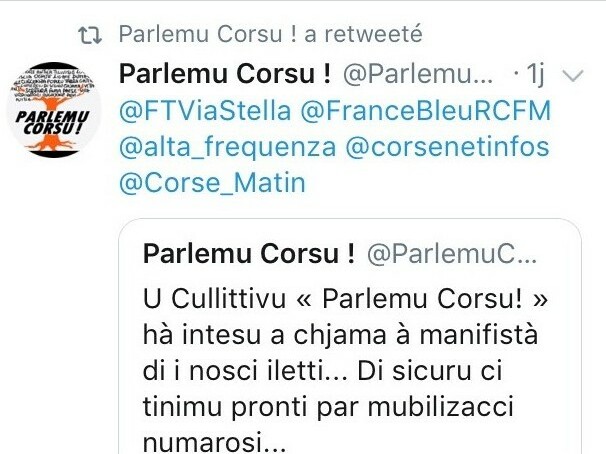 - Tutti l’azzioni rivindicativi in Còrsica (catena umana, festa rivindicativa, manifistazioni fistiva, granìtula rivindicativa…) è for’ di Còrsica (Parici, Brussela, Edinburg, San Sibastianu, Pluguffan…).