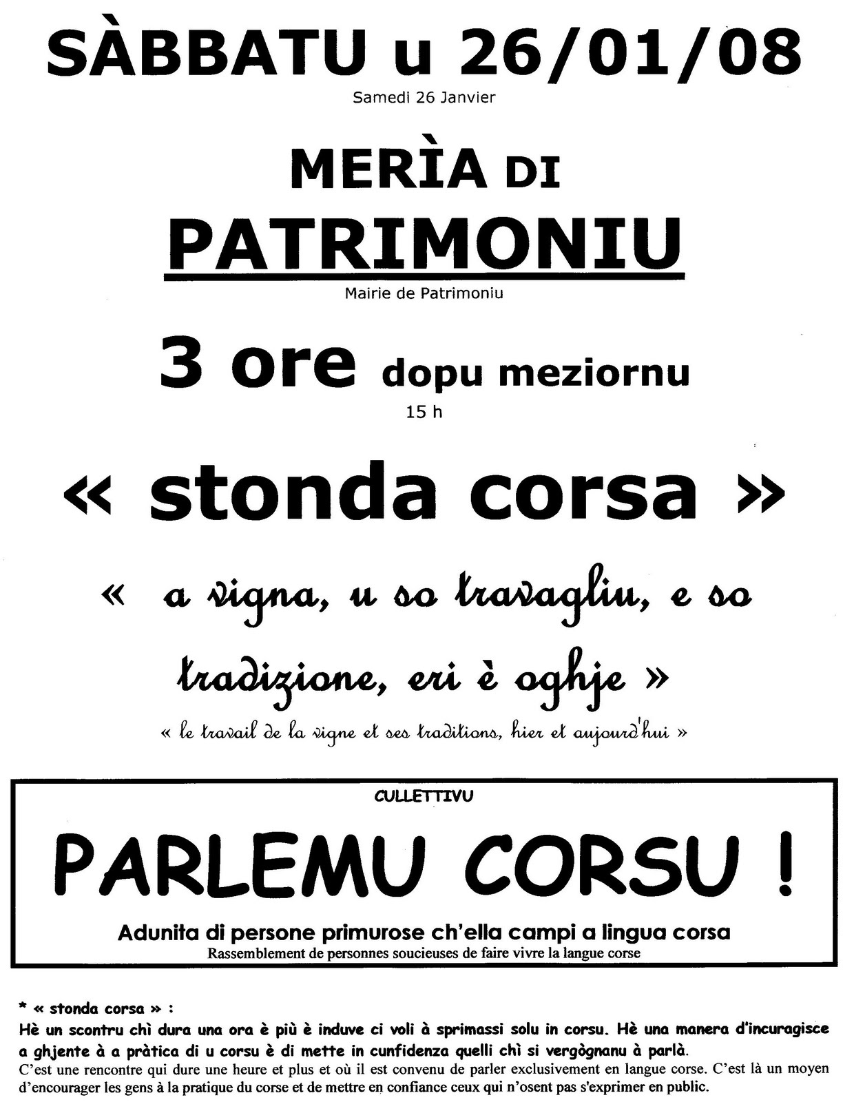U 26 di ghjinnaghju 2008 : "Stonda corsa" in Patrimoniu. Resucontu