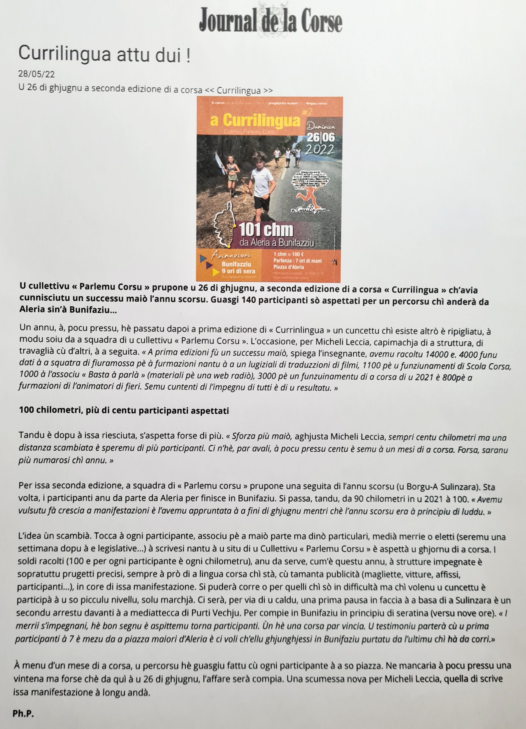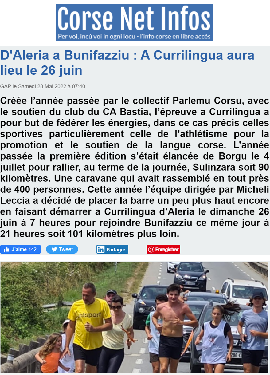 31/05/22 : Cunfarenza par annuncià a Currilingua (artìculu corsematin)
