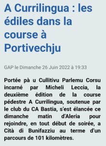 Jul3202203/07/2022Post navigationPreviousPrevious post:Di ghjunghju 2022 : a Currilingua 2a idizioni (sustenu di Via Stella è di corsematin)NextNext post:26/06/22 : a Currilingua 2a idizioni (cumenta dopu à a corsa 2/3)Related Posts11/07/25 : Sicondu scontru cù u rittori, in visiucunfarenza.16/07/202502/07/25 : intarvista Alta Frequenza16/07/202526/06/25 : S’hè affaccatu u pianu “Parlemu Corsu !” in l’imicìculu !16/07/202525/06/25 : 1a scontru cù u rittori16/07/202518/06/25 : intarvista RCFM16/07/202514/06/25 : intarvista RCF16/07/2025