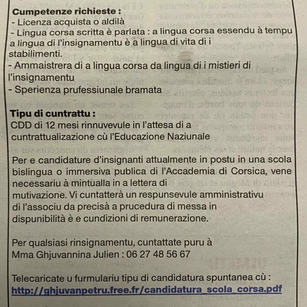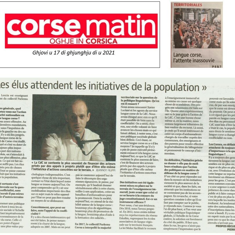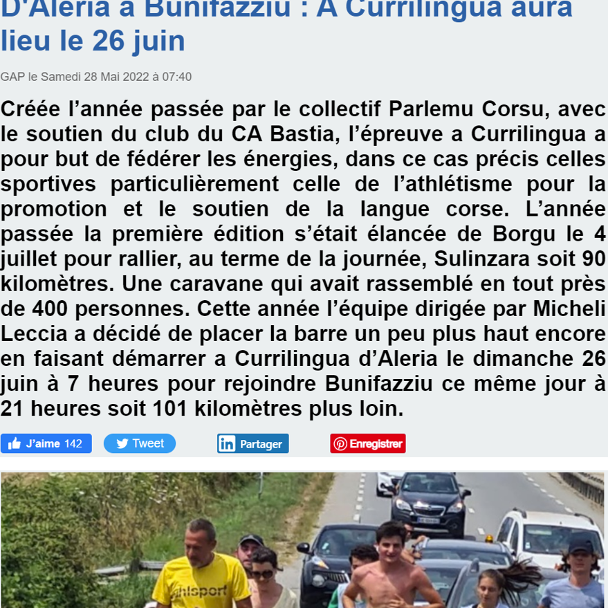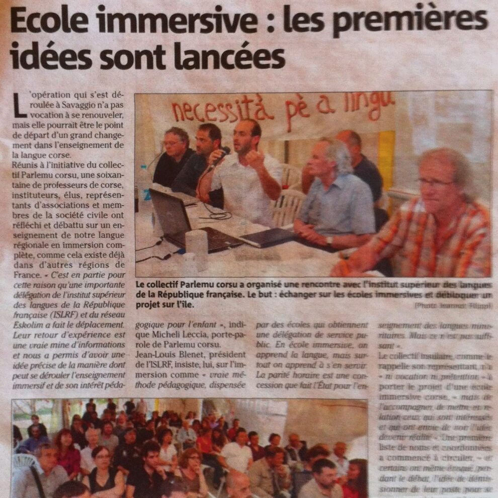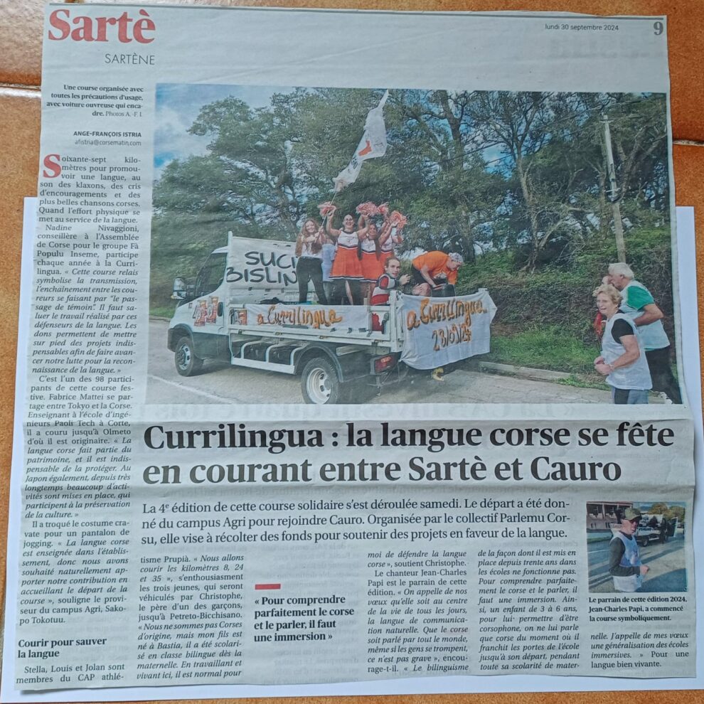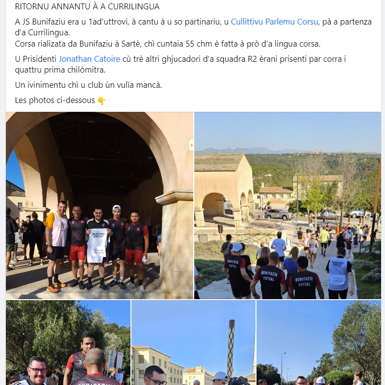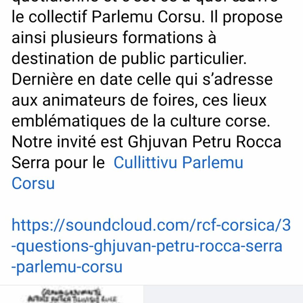 • Tutte l’azzione cuncrete, fatte per mustrà l’esempiu è à traversu tanti è tanti paesi di Corsica, da u Capicorsu à Bunifaziu, da Livante à Punente. Azzione chjamate “stonda corsa”,  “ghjurnate à tema”, “animazione per i chjuchi”, “dibattiti cù traduttori” è “fà aduprà u corsu à l’altri (per e fiere, i festivali o l’evenimenti spurtivi)”… trattendu di tanti è tanti sugetti, pè parlà di patrimoniu o di novi tecnolugie, di i tradizione o di u futuru…
