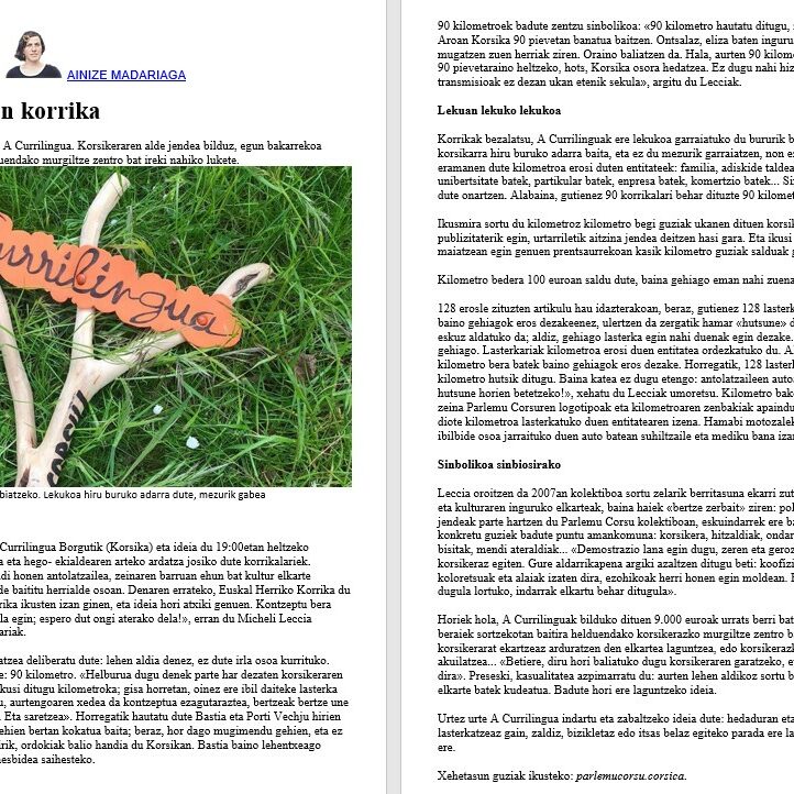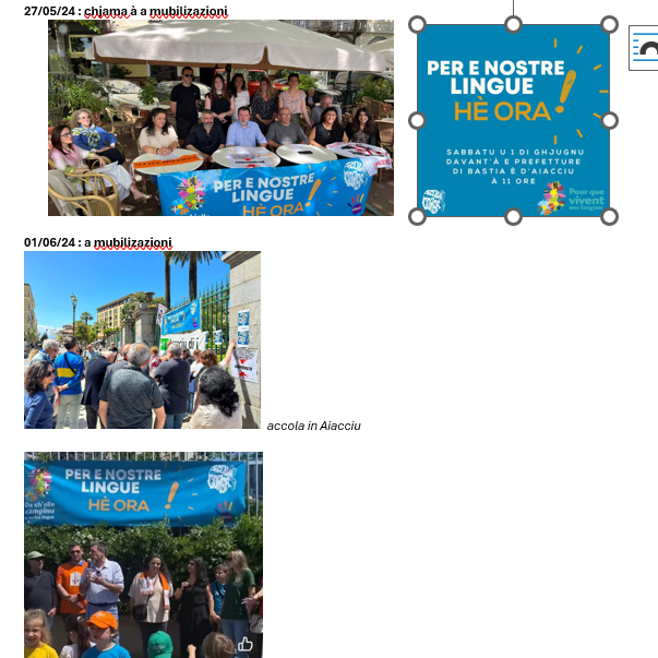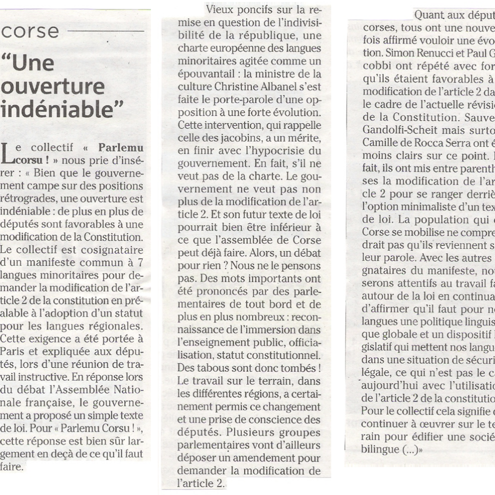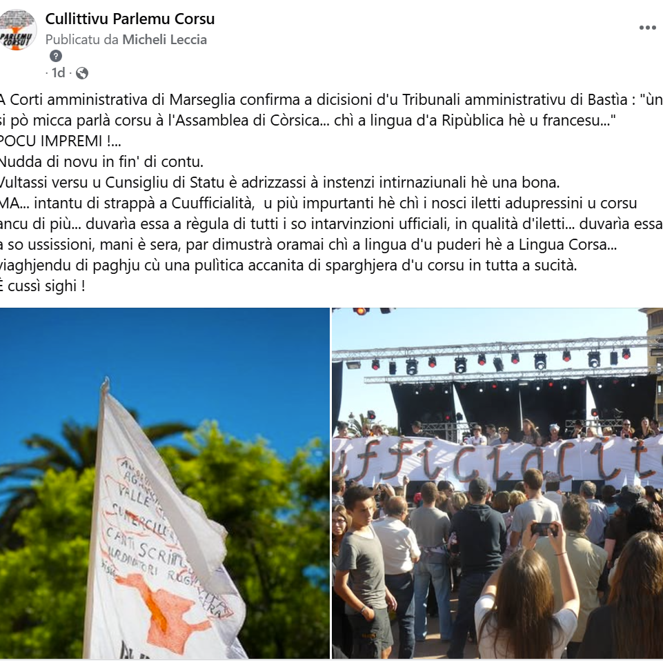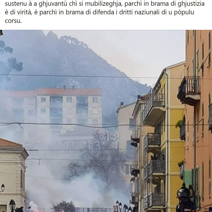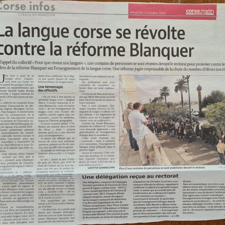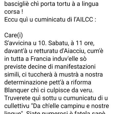 • Tutte l’azzione rivendicative in Corsica (catena umana, festa rivendicativa, manifestazione festiva, granitula rivendicativa…) è for’ di Corsica (Pariggi, Brussela, Edinburg, San Sebastianu, Pluguffan…).