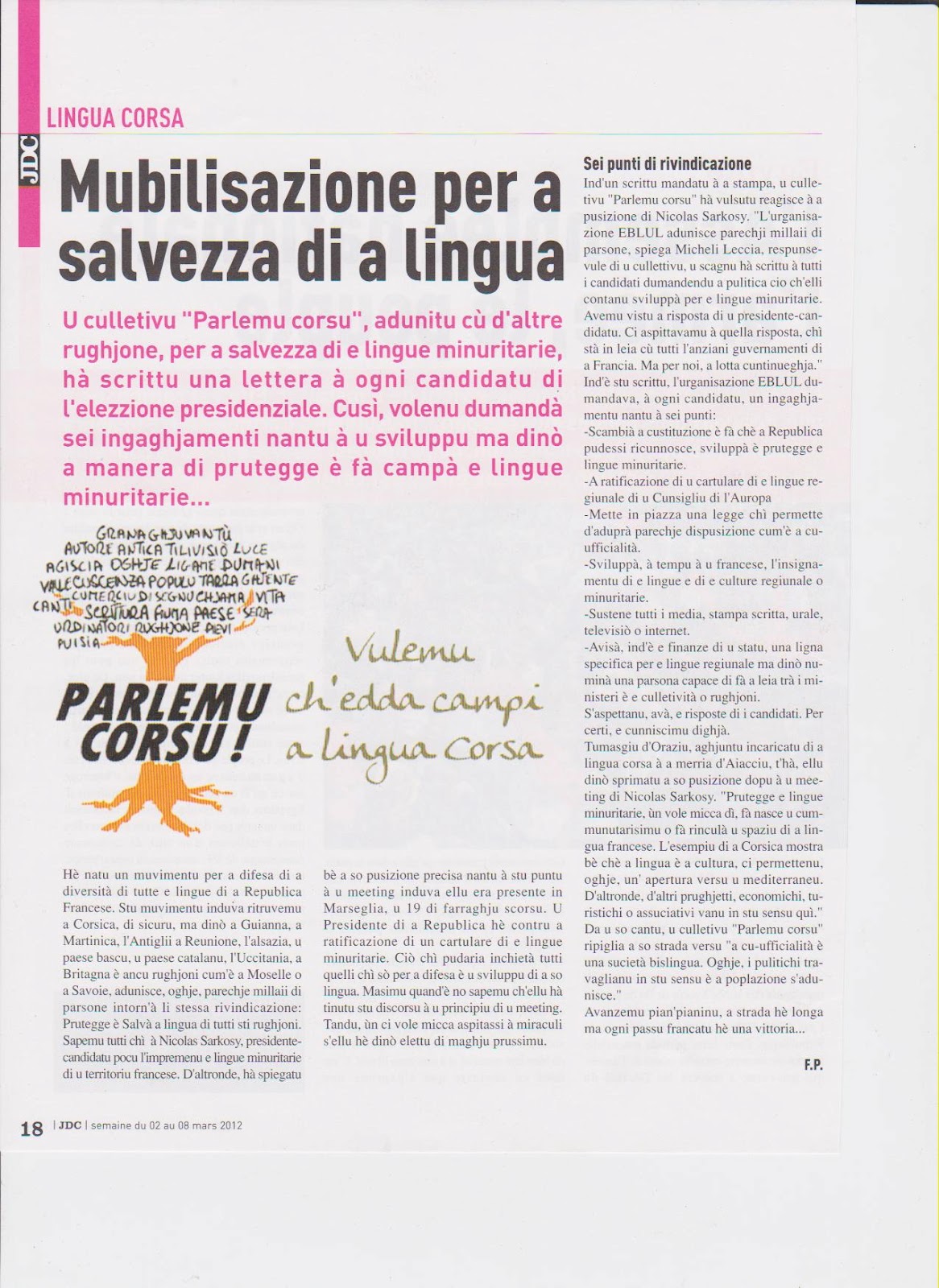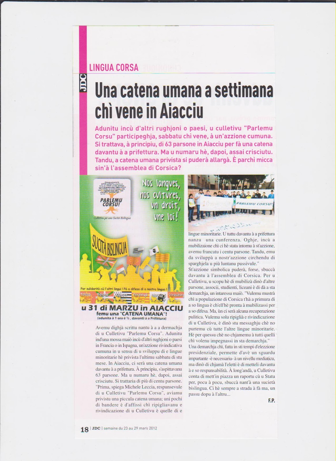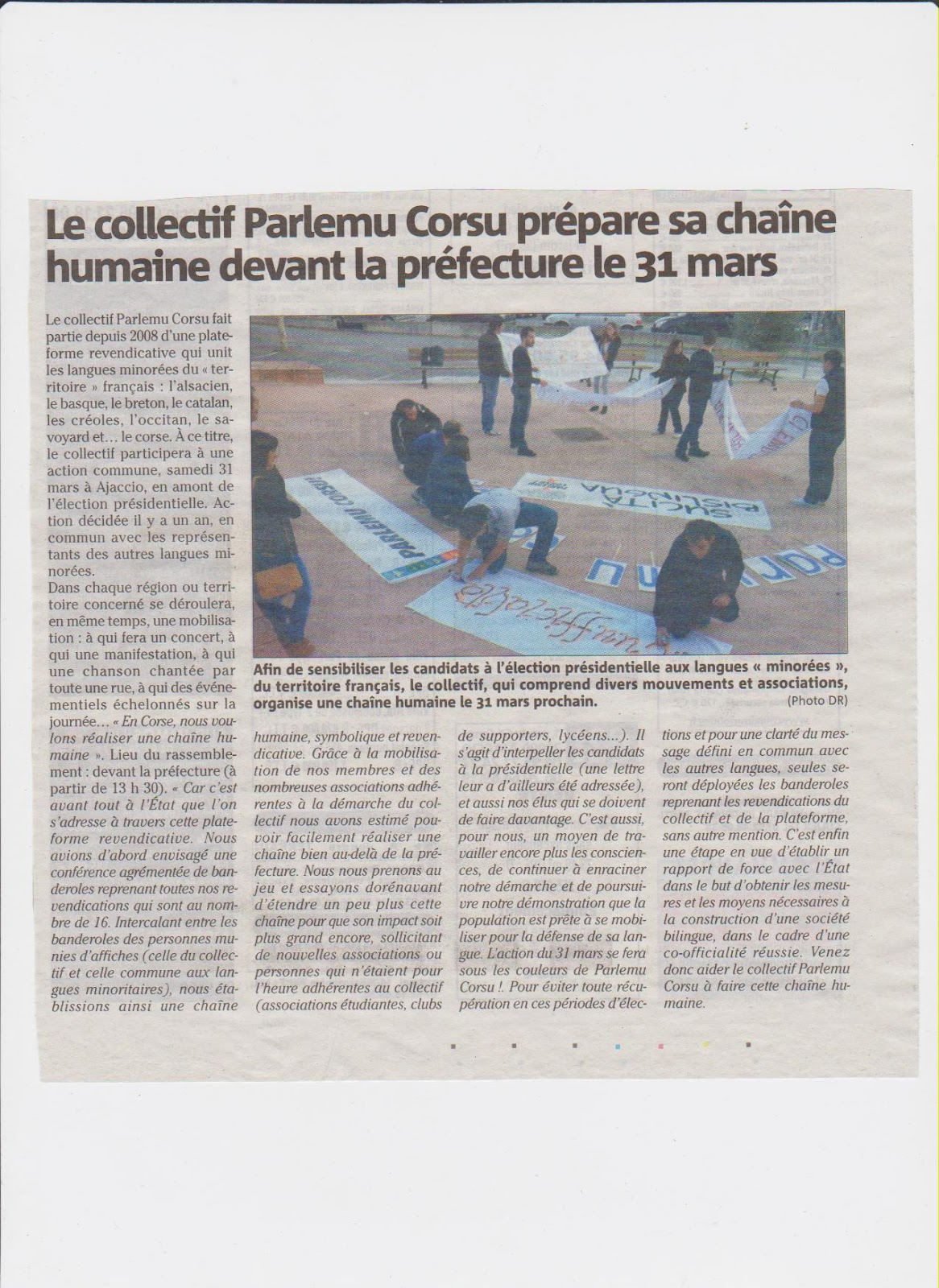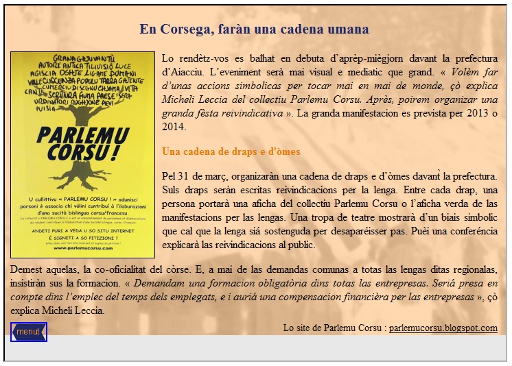 Mubilisazioni, sàpatu u 31 di marzu 2012 ! - Difesa di a Lingua Corsa - Sulidarità cù l'altri lingui -