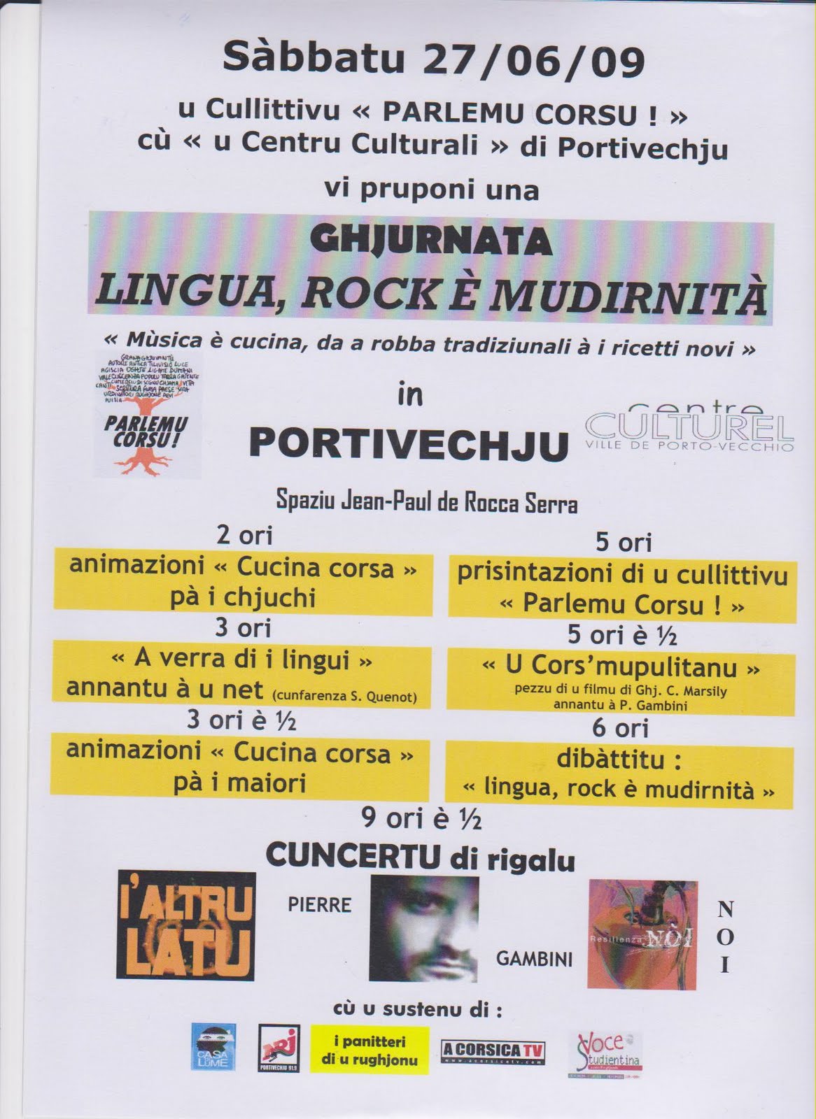 Ghjurnata "Lingua, Rock è Mudirnità" in Portivechju