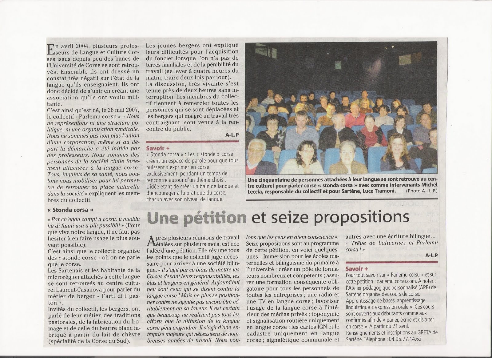 "la Corse Votre Hebdo" , u 29 di frivaghju 2008.