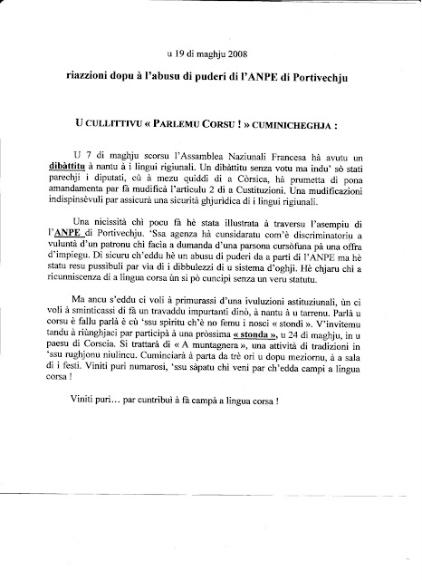21/04/08 : Scrittu unitariu pà i lingui minuritarii