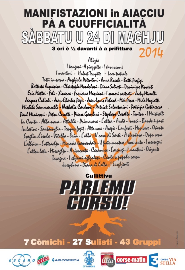 Associ, cantadori è teatrini seranu prisenti u 24 di maghju 2014 in Aiacciu per a Manifestazione Festiva sempre per a Cuufficialità :