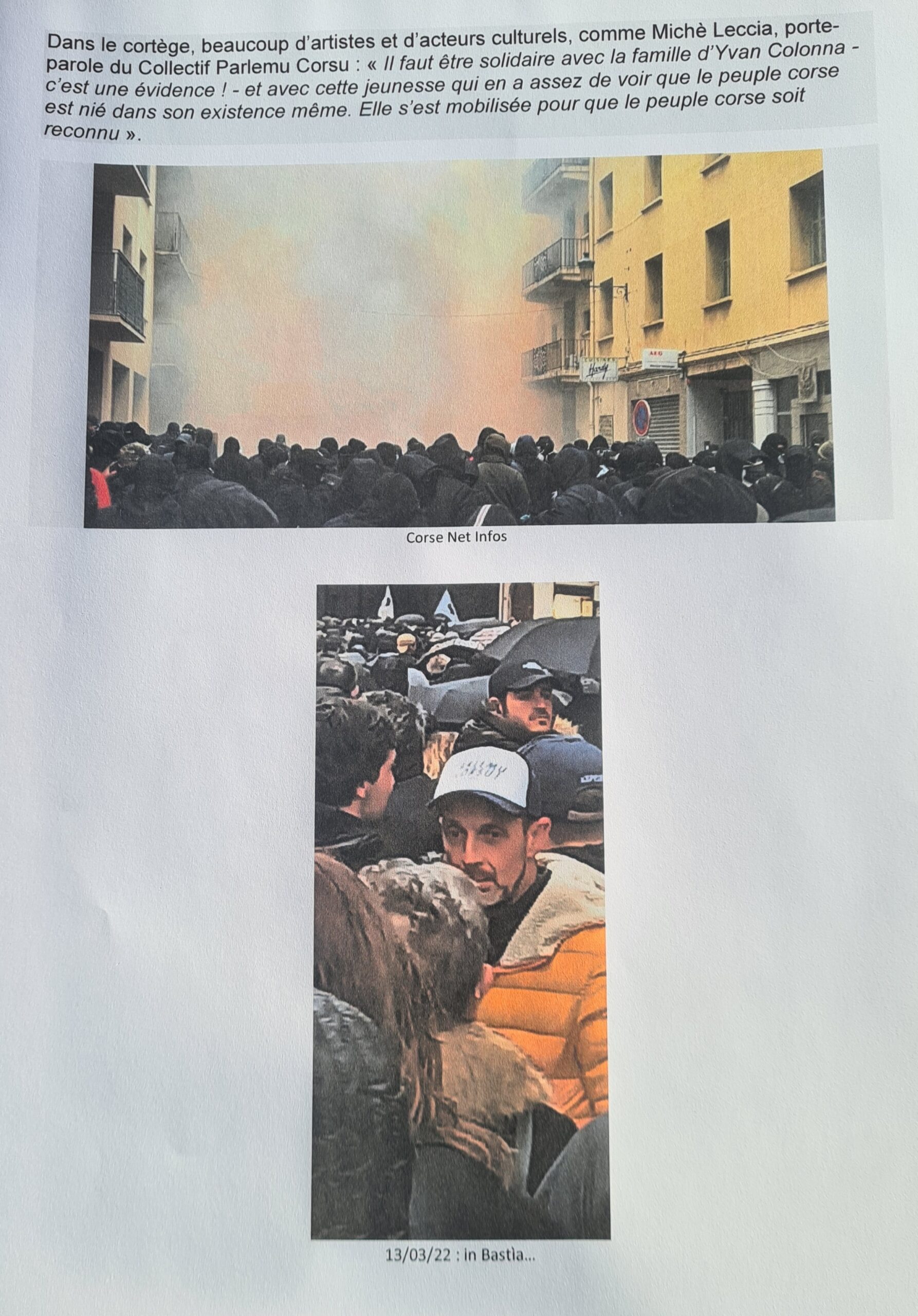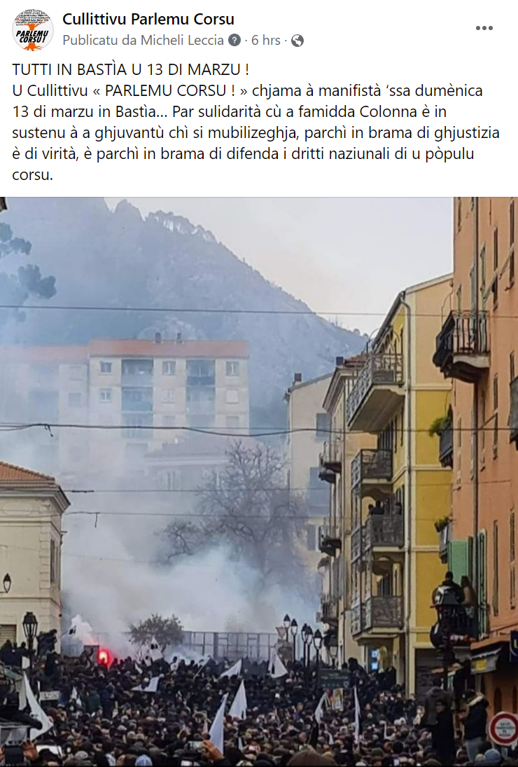 Priàmbulu : sulidarii di a famidda Colonna, dumandemu ghjustizia è virità com'è a dìcini i ghjòvani.