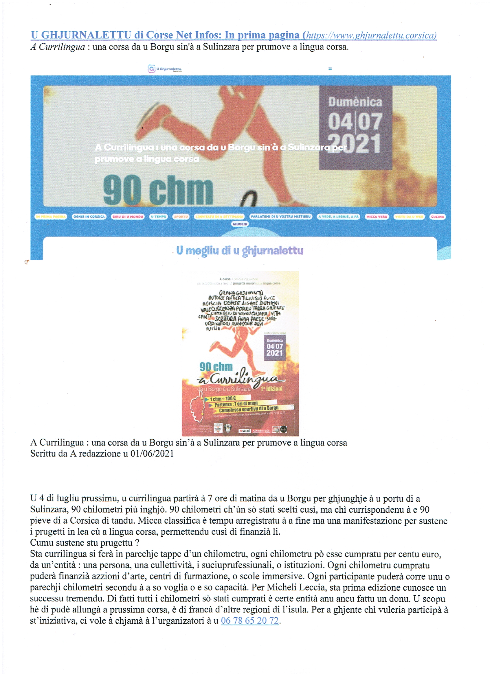 29/05/21 : A CURRILINGUA, artìcula à nantu à a Cunfarenza d'annunciu