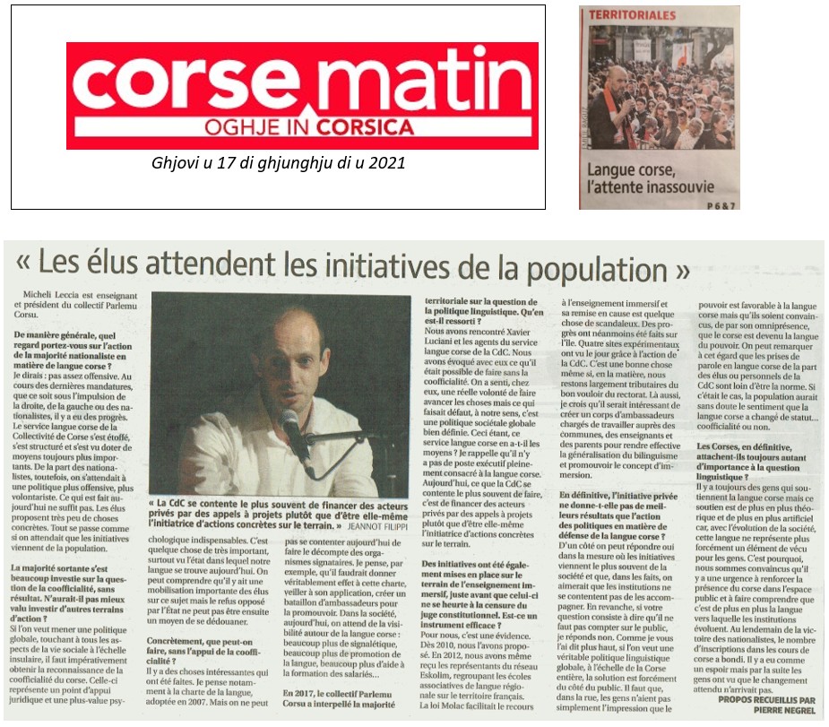 17/06/21 : Cartulari corsematin pà i tarrituriali (bilanciu di a CdC in tàrmini di lingua corsa).